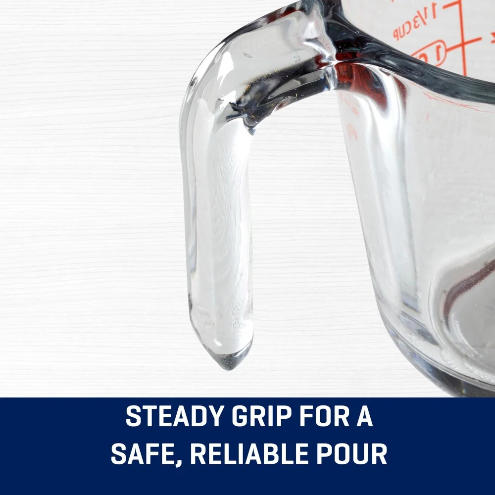 INCLUDES: (1) 8-ounce glass measuring cup with a signature spout and handle for easy, clean pouring to reduce messes and ensure you can be as exact as possible in your cooking.