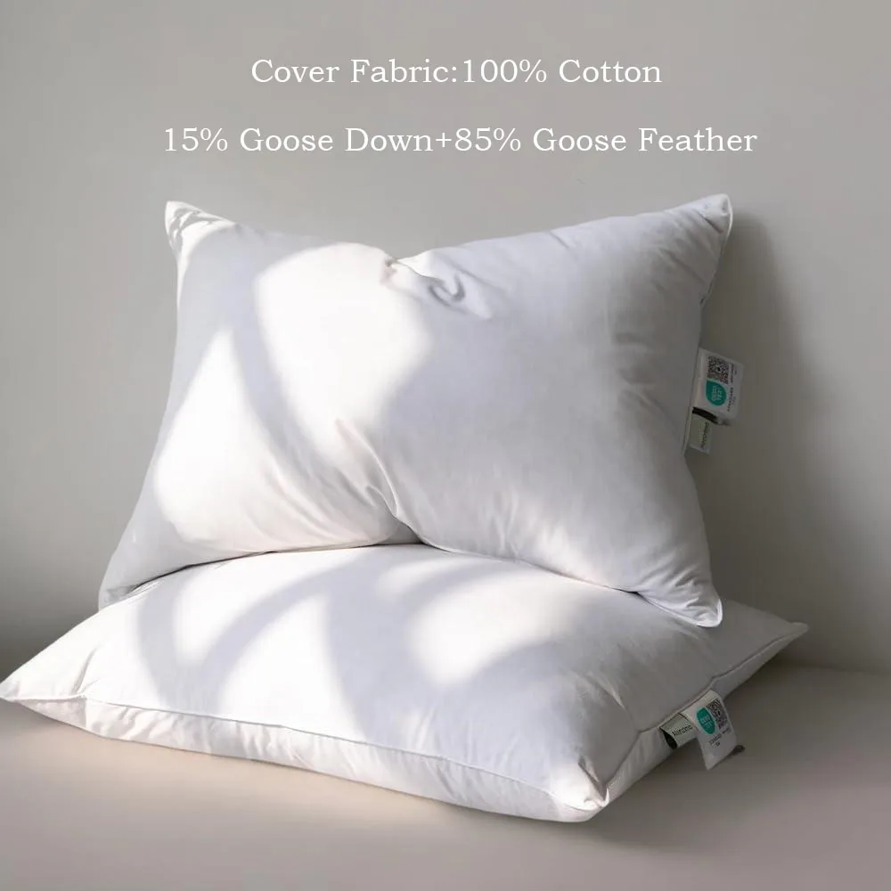 2pcs Goose Feathers Down Pillows, Luxury Soft Feather Down Pillow for Sleeping, 100% Cotton Cover Hotel Collection Bed Pillows