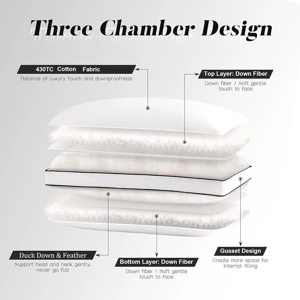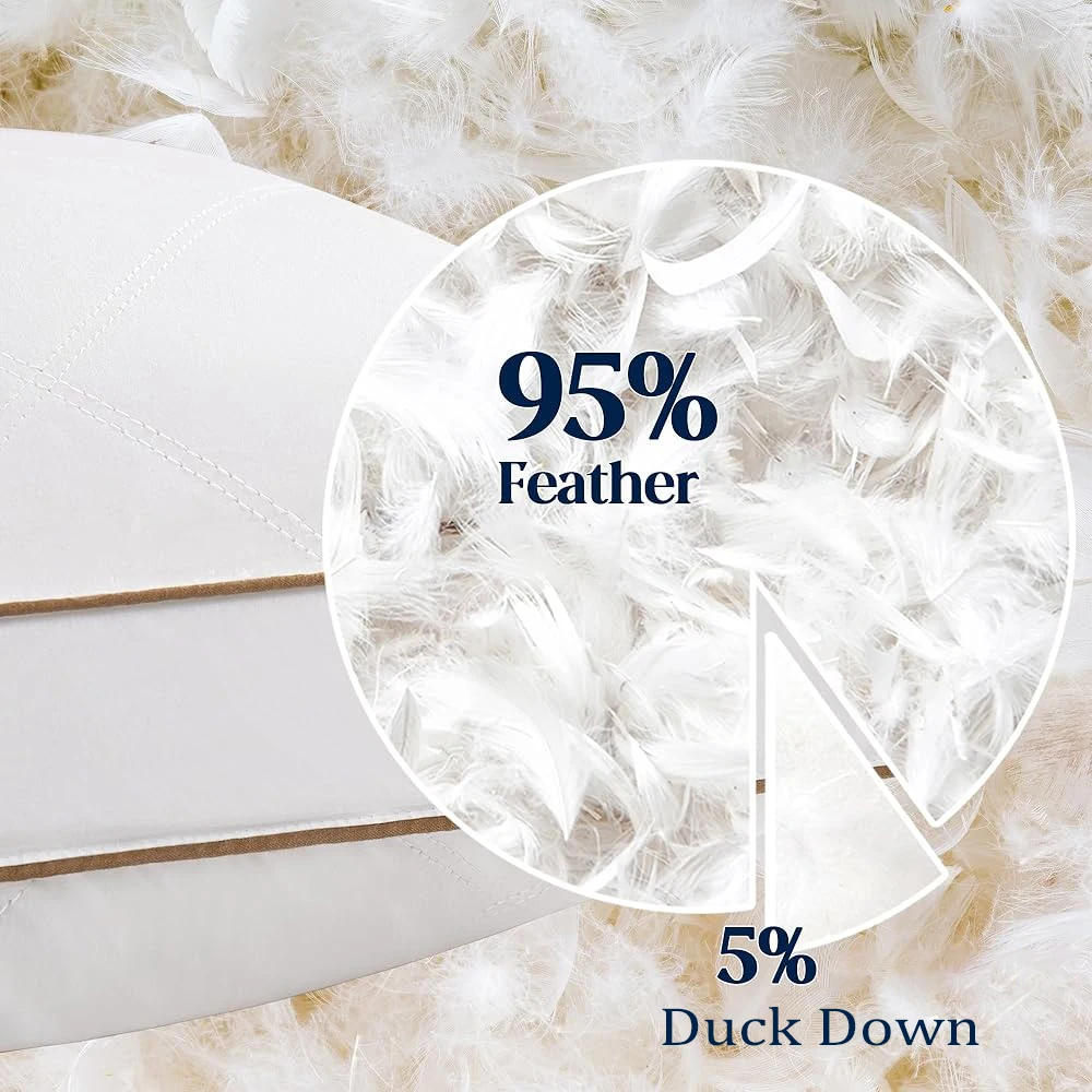 Softer & More Comfort: Our upgraded feather down pillow are filled with 85% goose feathers and 15% goose down, more ergonomic design, so they're softer, fluffier, more breathable, and more supportive than before. -Whether you're a supine, side or stomach sleeper - our pillows have you covered! Allows you to sink into a cloud of softness and comfort at any time, giving you better relaxation and improved sleep!