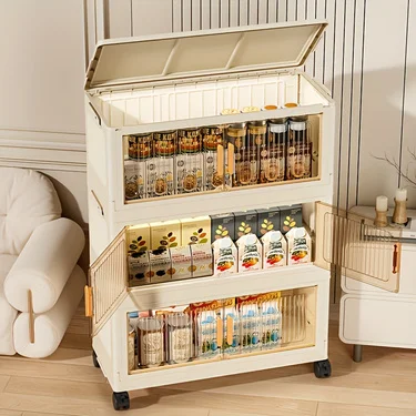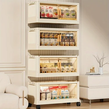 3/4/5-Tier Foldable Cabinet - Plastic Lidded Storage Box, Stackable w/Wheels, for Closet/Bedroom/Office/Kitchen, Decor & Rack