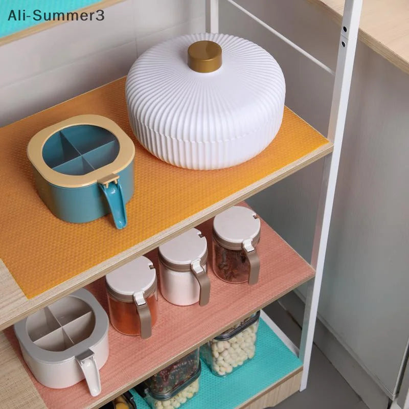These liners can work as fridge shelf liners, drawer liners and cabinet drawer liners.