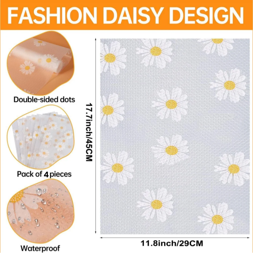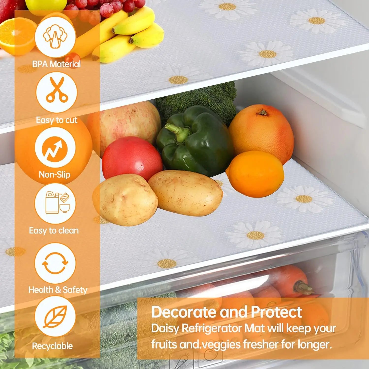 4pcs Washable Refrigerator Mats, Waterproof & Oil-Repellent Organizer Liners for Fridge Freezer Shelves Drawers.