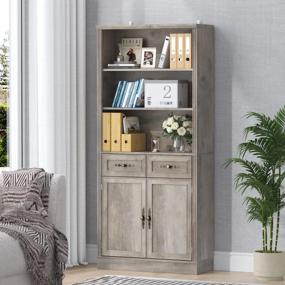 - Versatile Storage Solution with Drawers & Shelves : This bookcase with drawers offers 5 spacious shelves and 2 drawers, providing ample space for books, décor, or office supplies. Dimensions: 71.4"H x 31.5"L x 12.62"W.