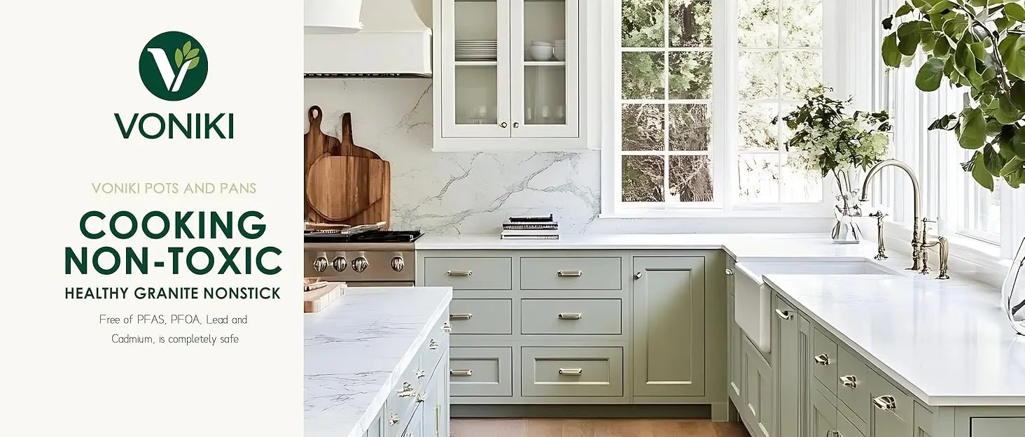 3. 【Non Toxic Ceramic Coating】- Ceramic pots and pans set nonstick are free of PTFE, PFOA, PFAS, lead, cadmium and other toxic materials, 100% safe for you, your family, and the environment.