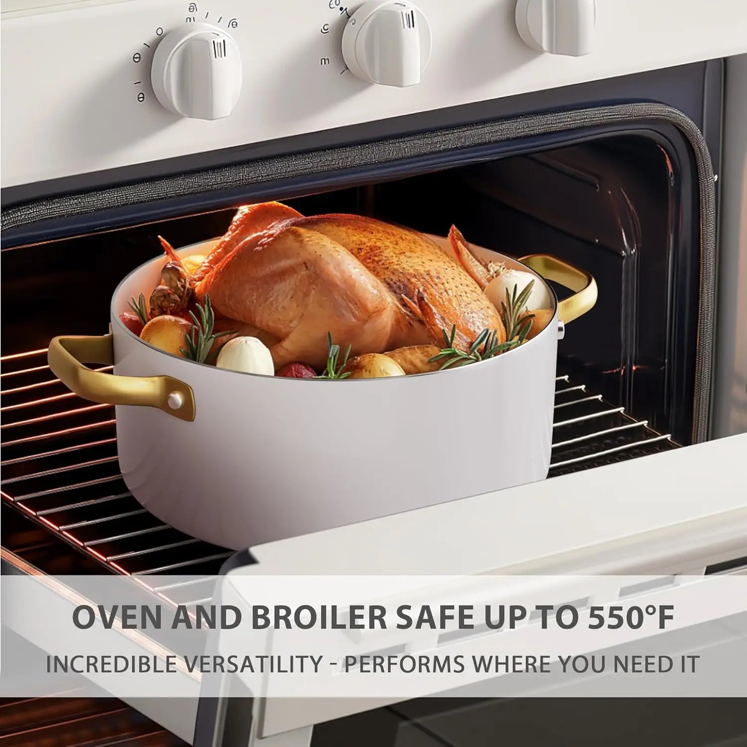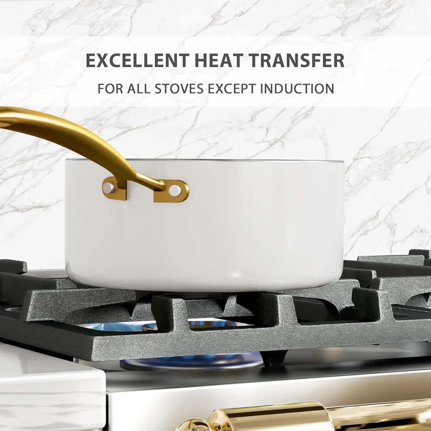 5. 【For all Stovetops Except Induction】- The nonstick cookware set does not have a magnetic induction bottom, which allows faster heating on other cooktops, saving time and energy. Oven safe up to 550°F.