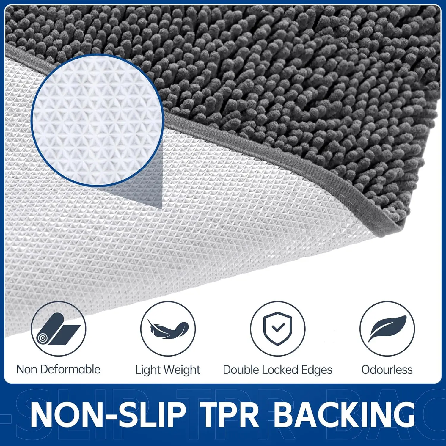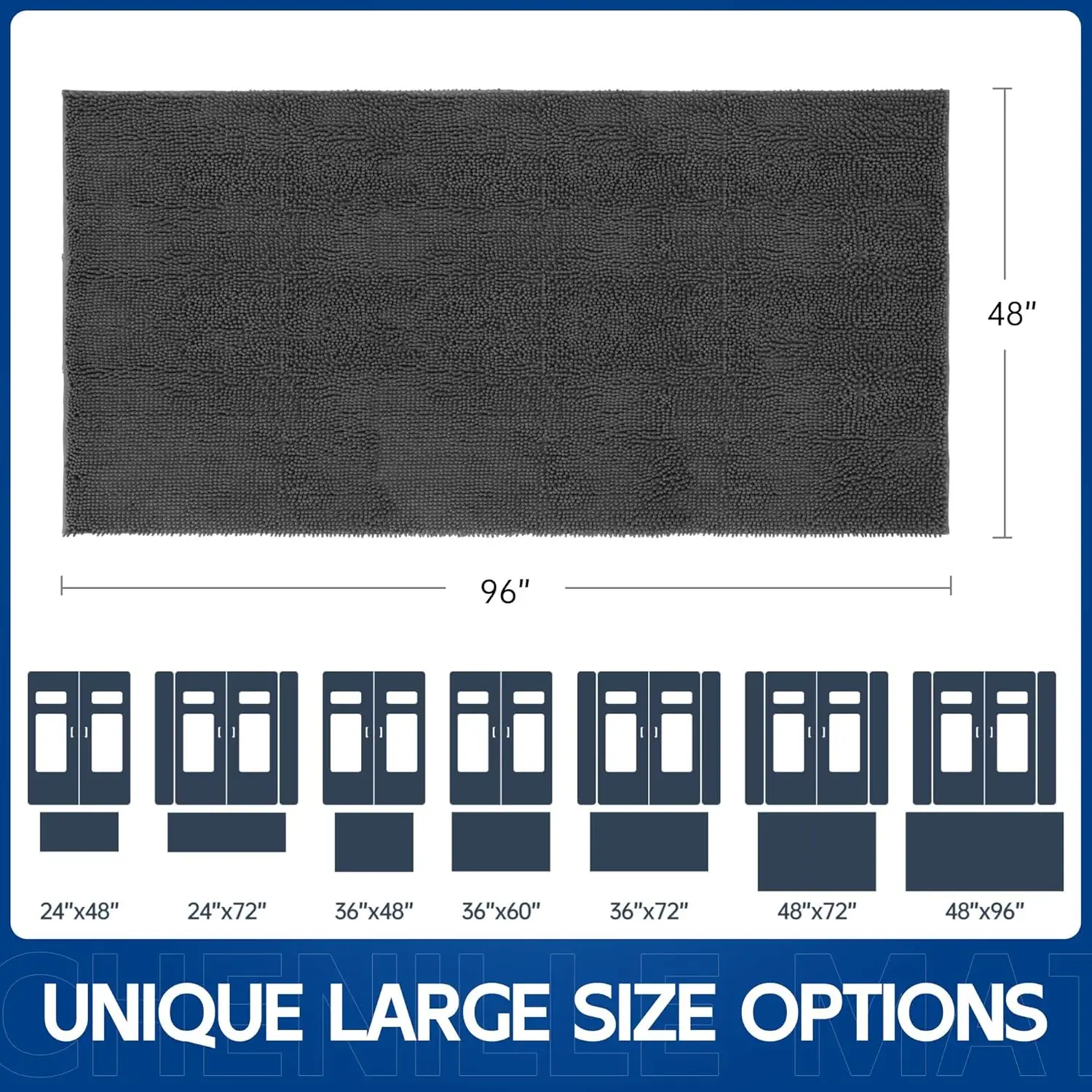 Chenille Absorbent Door Mat 96x48, Washable Non-Slip Indoor Outdoor Doormat for Muddy Paws and Dirt Trapping, Grey