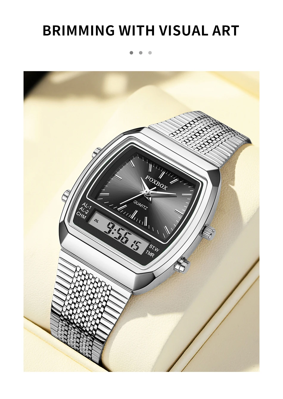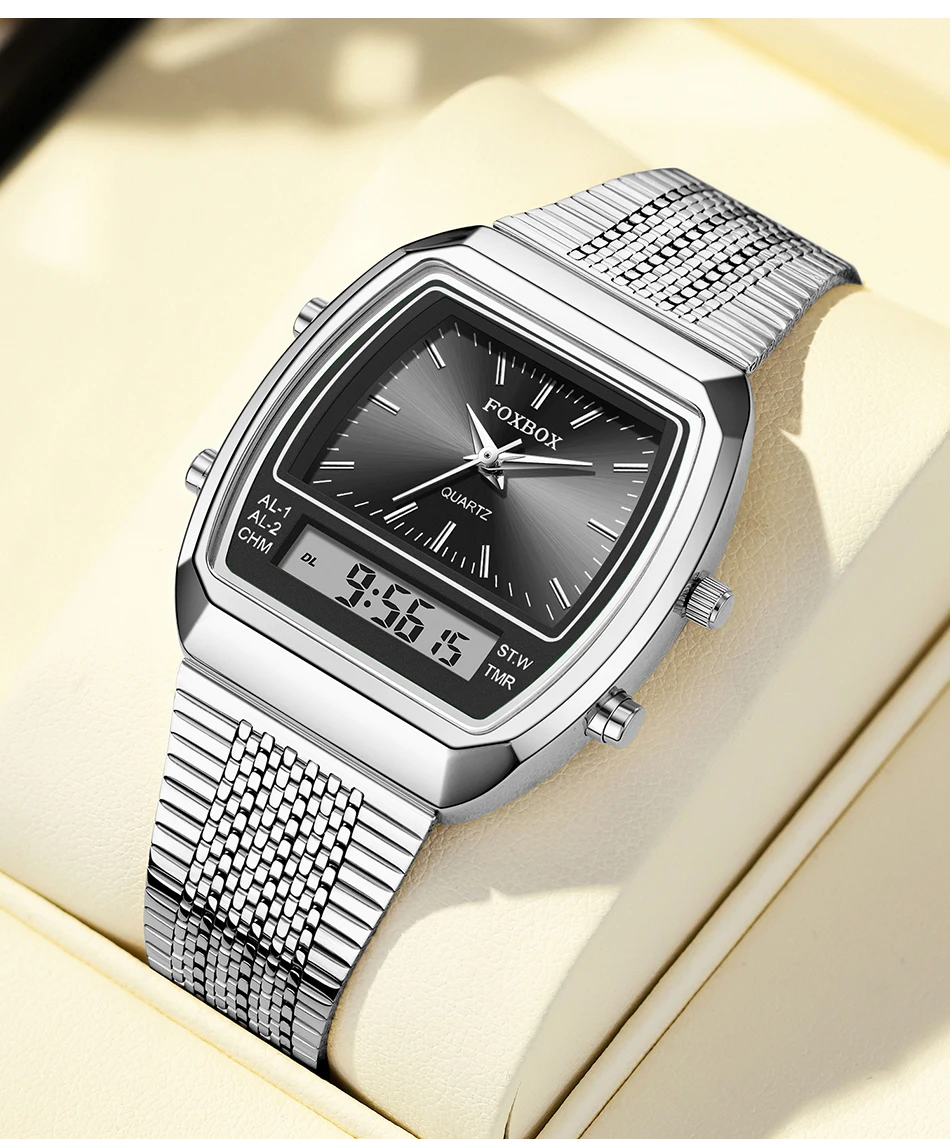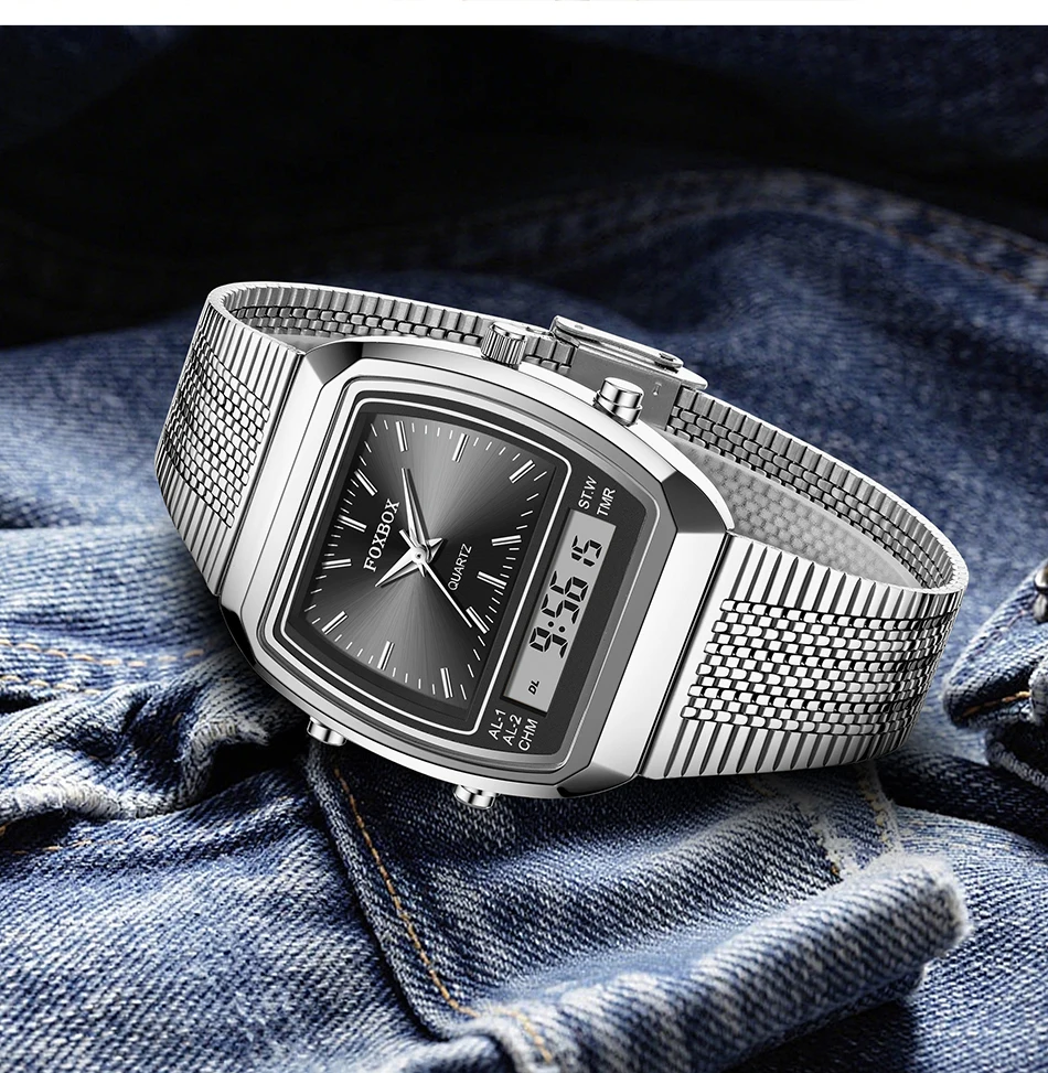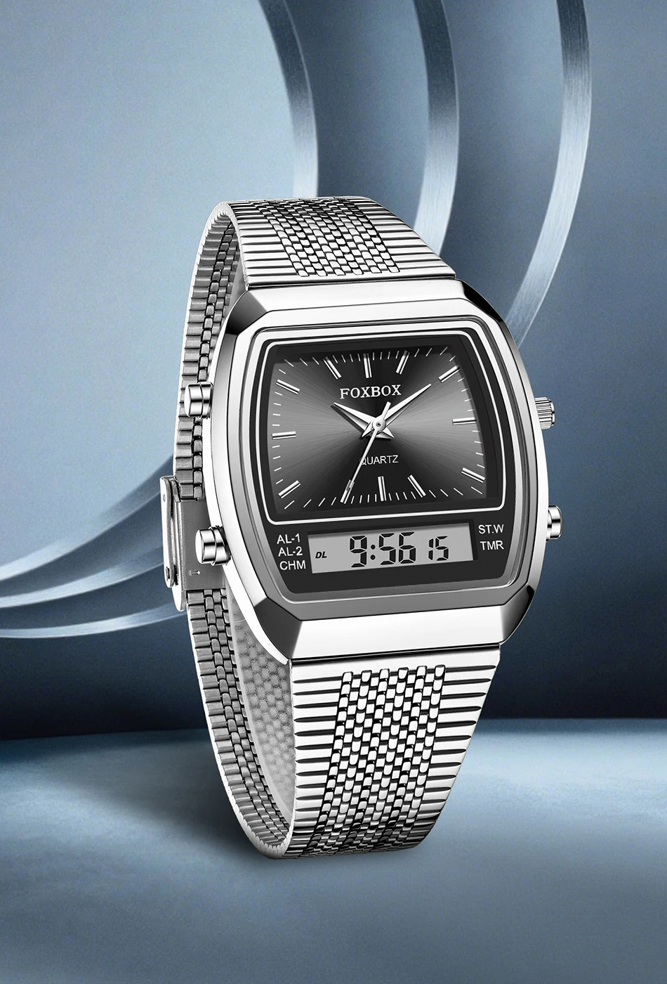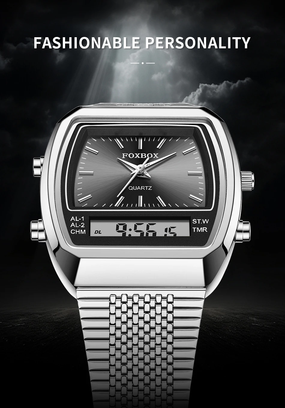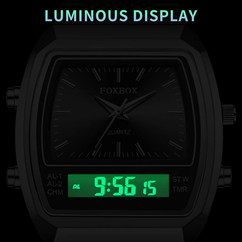 FOXBOX 2026 New Luxury Mens Watch Sports Fashion Digital Watches Men Waterproof Luminous Steel Quartz Wristwatches Reloj Hombre