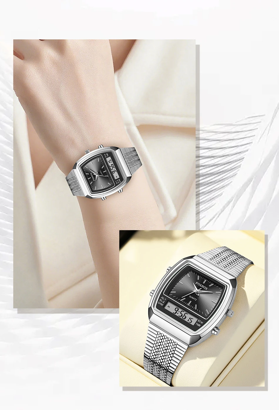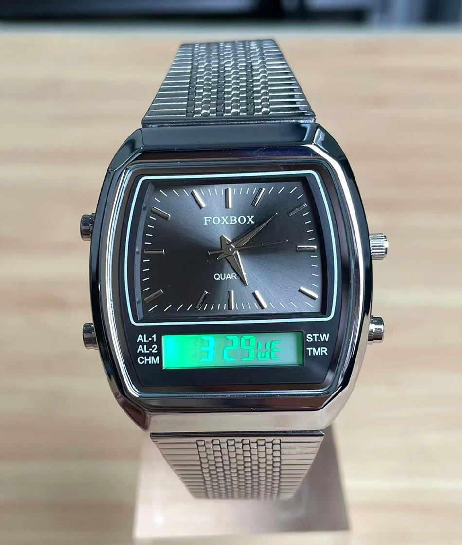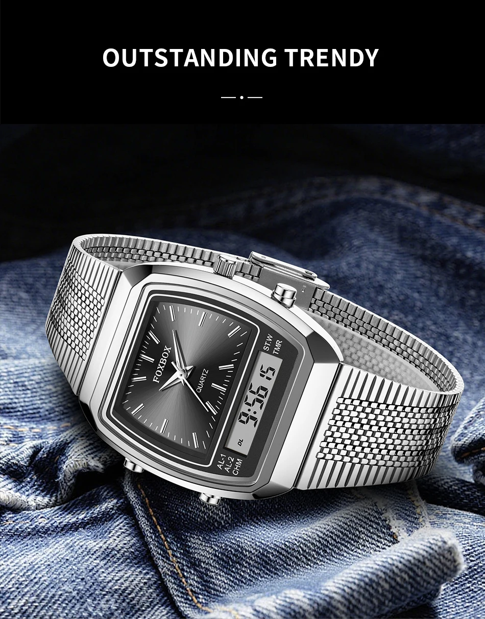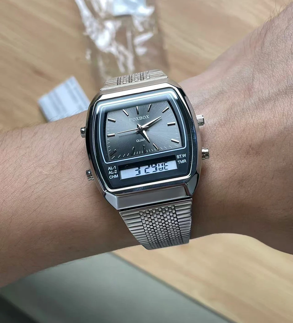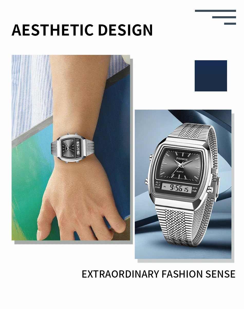 FOXBOX 2026 New Luxury Mens Watch Sports Fashion Digital Watches Men Waterproof Luminous Steel Quartz Wristwatches Reloj Hombre