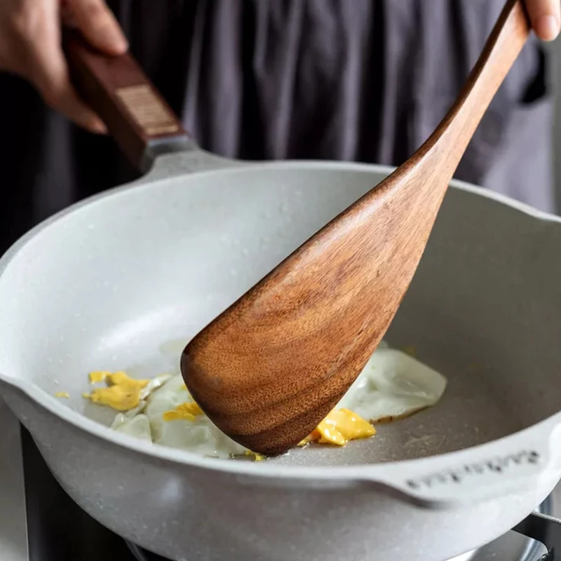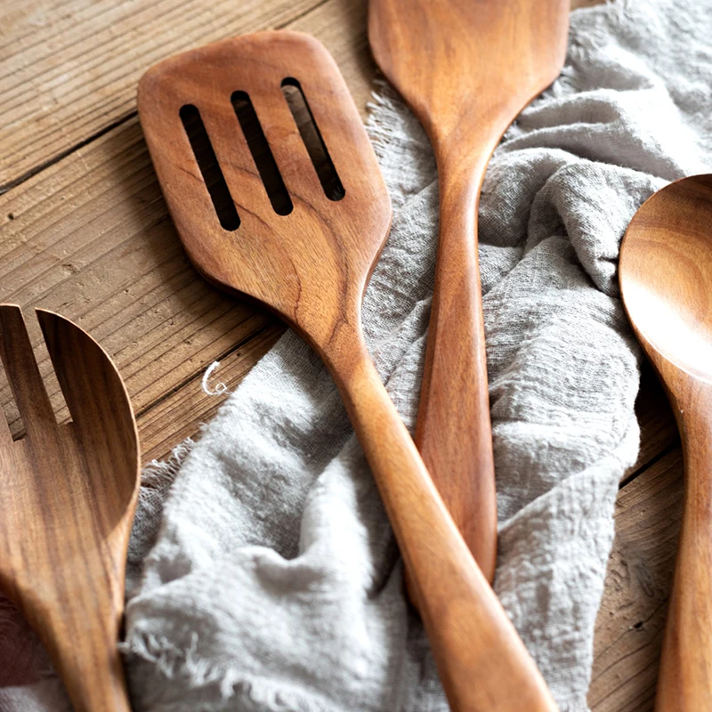 Crafted from 100% solid natural teak wood, our kitchen tools offer superior durability compared to silicone or bamboo. Naturally dense and heat-resistant, teak ensures safe, healthy food preparation while resisting warping and splintering.