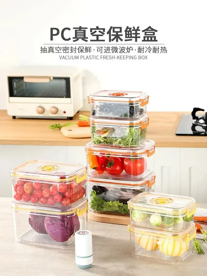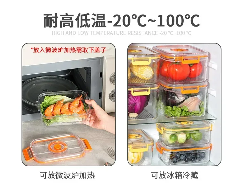 Vacuum Fresh-keeping Box Refrigerator Sealed Canister Microwavable Transparent Food Storage Container Kitchen Organizer Bento